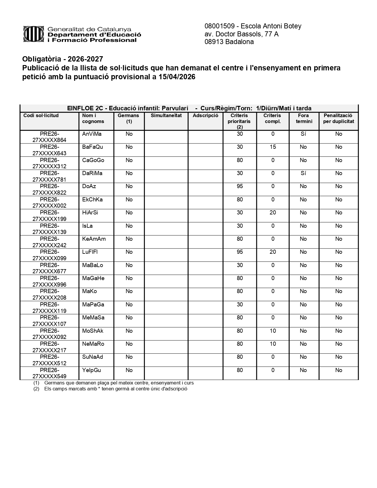 @somantonibotey @boteyband @afa_antonibotey OFERTA INICIAL DE PLACES FORMULARI PORTES OBERTES CURS 26-27 PREINSCRIPCIÓ DEL 4 DE MARÇ AL 18 DE MARÇ. Per veure informació de la nostra escola cliqueu al següent enllaçDOSSIER INFORMATIU ENTITATS COL·LABORADORES: